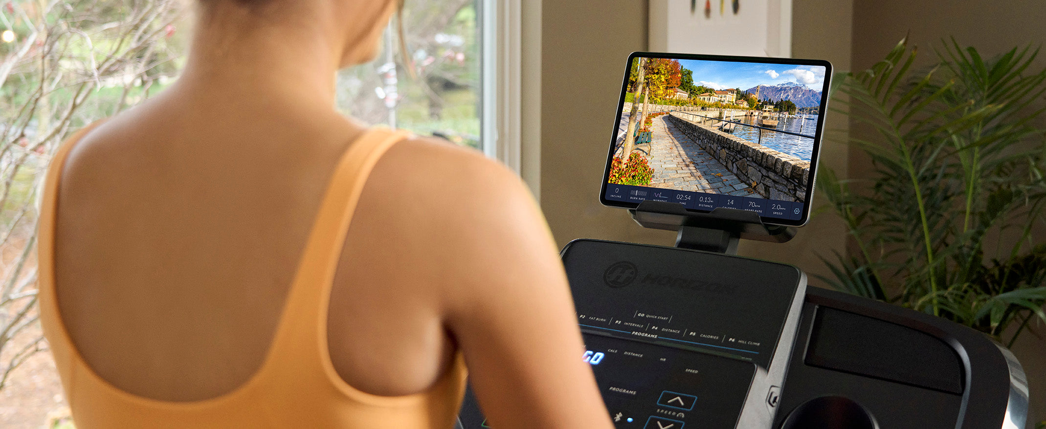 *Tablet and subscriptions not included. All trademarks are property of their respective owners, are used for identification purposes only, and do not imply endorsement. Equipment connectivity requires a Bluetooth FTMS or Bluetooth heart rate connection – not available on all Horizon products. See Horizon product pages for details.