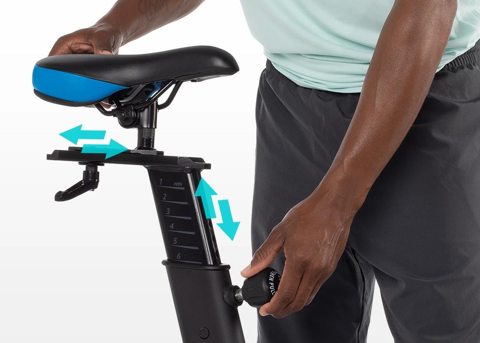 Fully adjustable handlebars and saddle position supports proper form for your most effective ride. Dual-sided pedals with toe cages and SPD clips let you decide how to ride.